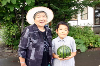 おばあちゃんは、お寺参りに行くところだったみたいです。しかし、列車を2時間も待たなければならなくて困っていたところ、僕たちが通りかかり、声をかけたとのこと。車中でいなり寿司やスイカ・カボチャなど、たくさん渡され困ってしまいました。きっとすごく嬉しかったじゃないかと思います。約10分ほどで駅前のお寺に到着。本当に短い時間だったけどお別れが辛かったです。いなり寿司は本当に美味しかったです。スイカはママの大好物!