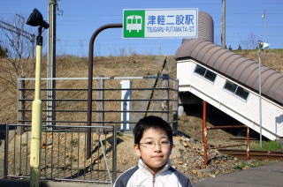 青函トンネルの開通と同時にこの駅の近くに津軽今別駅が開業、津軽今別の駅へは僕の後ろにある連絡通路の階段を上って1分もしないうちに到着してしまいます。海峡線と津軽線の接続駅であると言ってよいですが、両路線とも停車する列車の本数があまりにも少ないため、乗り換える人は、まずいないでしょう。ネ!